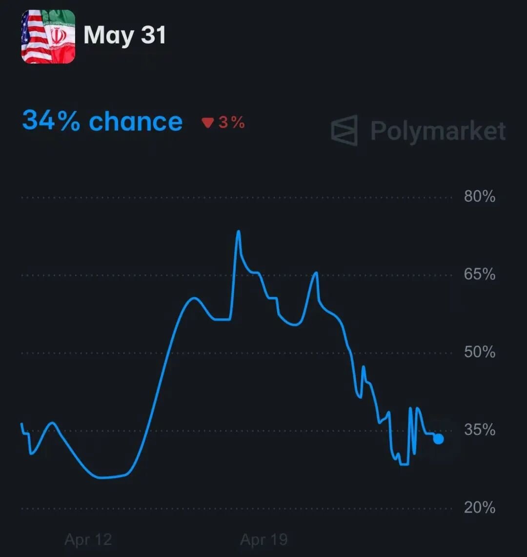 周末美伊未直接会面,谈判推至4月27日。Polymarket上预期5月底前达成阶段性停火的概率只有三成,市场的乐观情绪,本质是对 “冲突不升级、风险溢价回落” 的提前计价。若本周谈判释放实质性停火信号 —— 如双方同意延长临时停火、就制裁部分解除与海峡有限通航达成谅解,风险资产将继续上涨;若分歧加剧、谈判停滞,则市场乐观情绪可能会暂告段落。