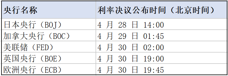日央行:市场普遍预计日本央行 4 月维持利率不变,但市场对6月份BOJ加息概率高达65%,本次会议核心看点在于能否守住 6 月加息预期。1)若释放鸽派信号、导致 6 月加息预期回落:USD/JPY 大概率突破 160 关口进一步上行;若快速贬值至161–163 区间,日本当局干预的概率将显著上升。2)若明确释放 6 月加息信号:将有效限制日元跌幅,但受油价高位压制,预计日元反弹空间有限。